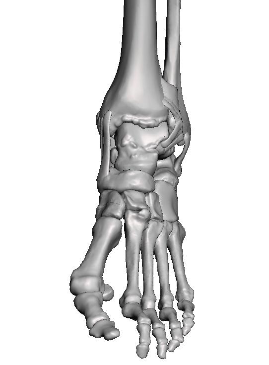 This base model allows you to build your own customized ankle by choosing which anatomical structures you would like to include or exclude from the model. Included with the base model is the tibia, fibula, talus and other foot bones with all major ligaments and simplified subtalar capsule.