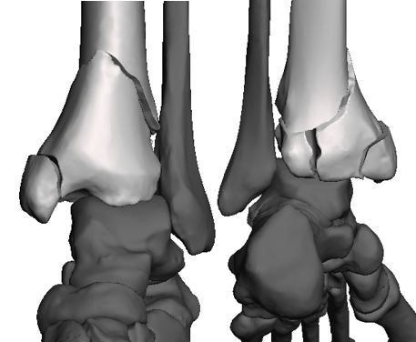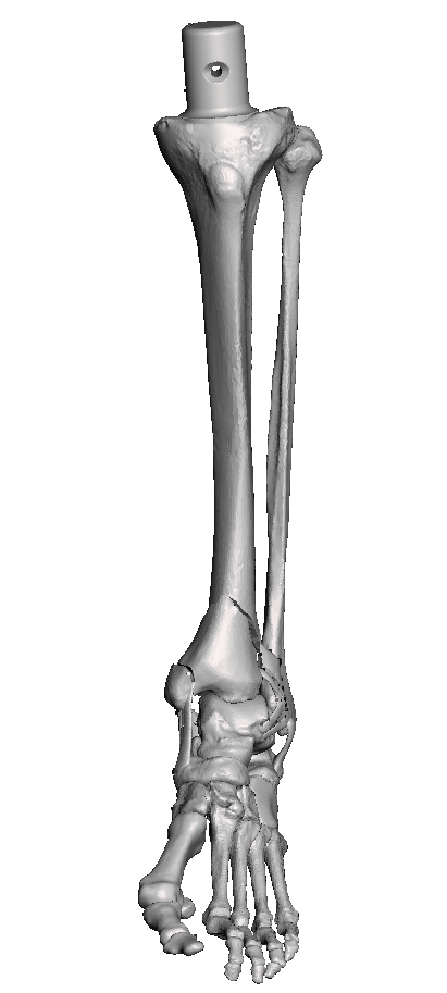 This model interfaces with the SurgiSTUD Ankle stand to provide a platform for training ankle pilon fracture procedures. The skin and radiolucent soft tissues allow for realistic surgical approach and radiographic evaluation. The collateral ligamentous structures replicate the tension of a human ankle specimen and cortical, cancellous, and intramedullary regions of bone react realistically to cutting, reaming, rasping, and drilling with high biomechanical and tactile fidelity.